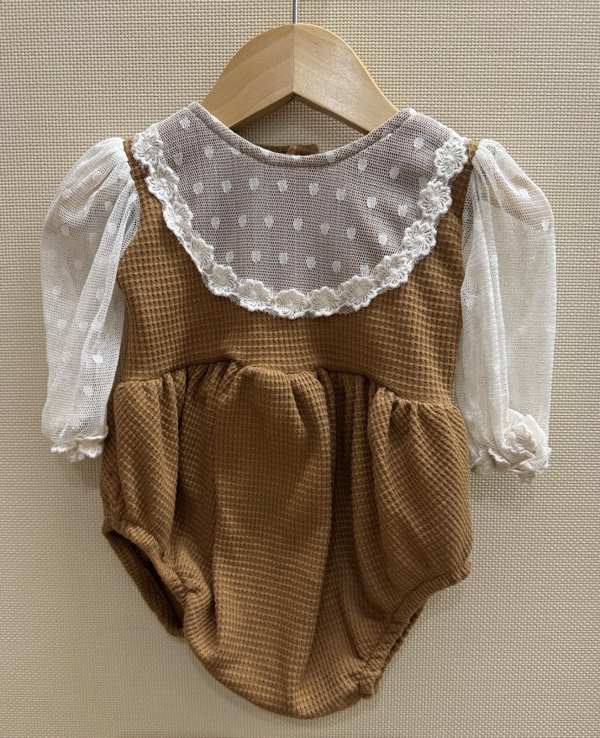 Conforto e estilo para as pequenas com o Body Lorena Caramelo, uma peça charmosa e delicada para o dia a dia.